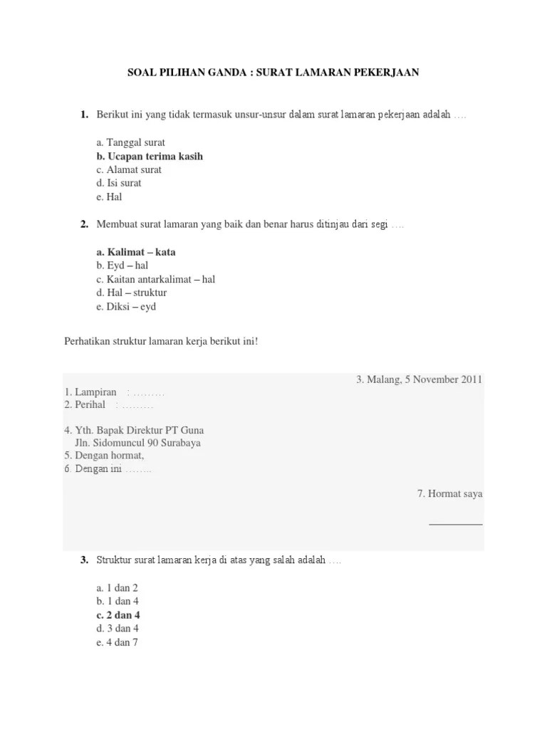 Contoh soal surat lamaran kerja bahasa indonesia berikut ini beberapa contoh soal materi surat lamaran kerja beberapa soal merupakan soal un .